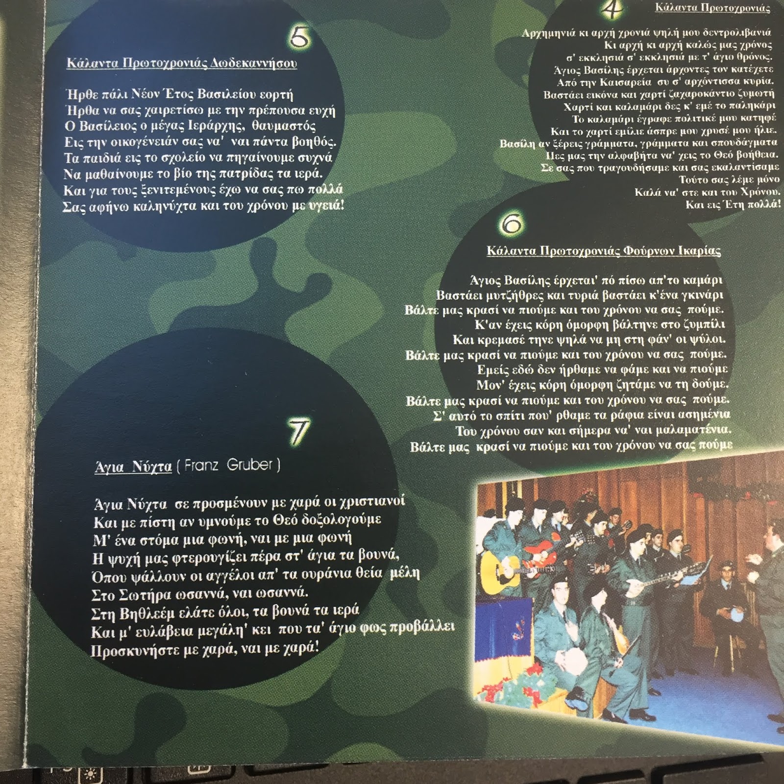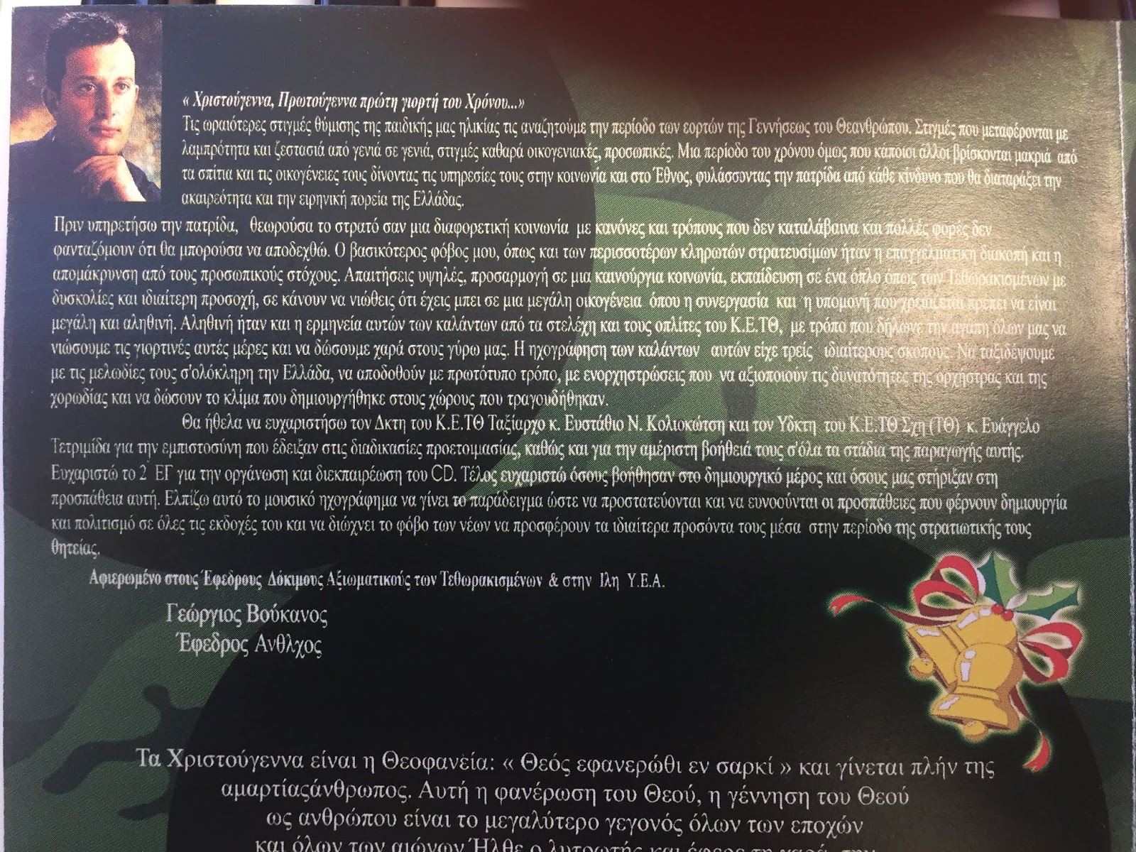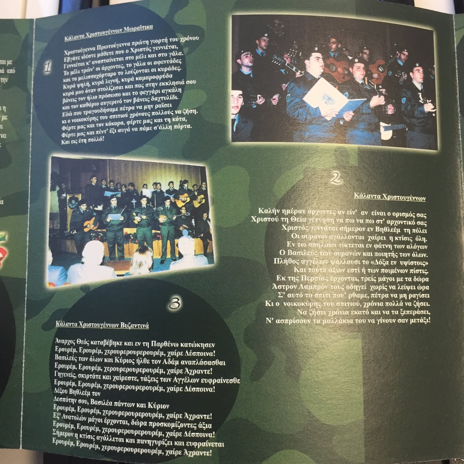 Ένα σπάνιο Cd με Παραδοσιακά Χριστουγεννιάτικα Κάλαντα από ολόκληρη την Ελλάδα είχα την τύχη να δημιουργήσω κατά την περίοδο της θητείας μου στα Τεθωρακισμένα με την βοήθεια του φιλόμουσου τότε Διοικητή του ΚΕΤΘ Βαγγέλη Τετριμίδα. Απίστευτο γεγονός!!! για τα χρονικά του Στρατού.