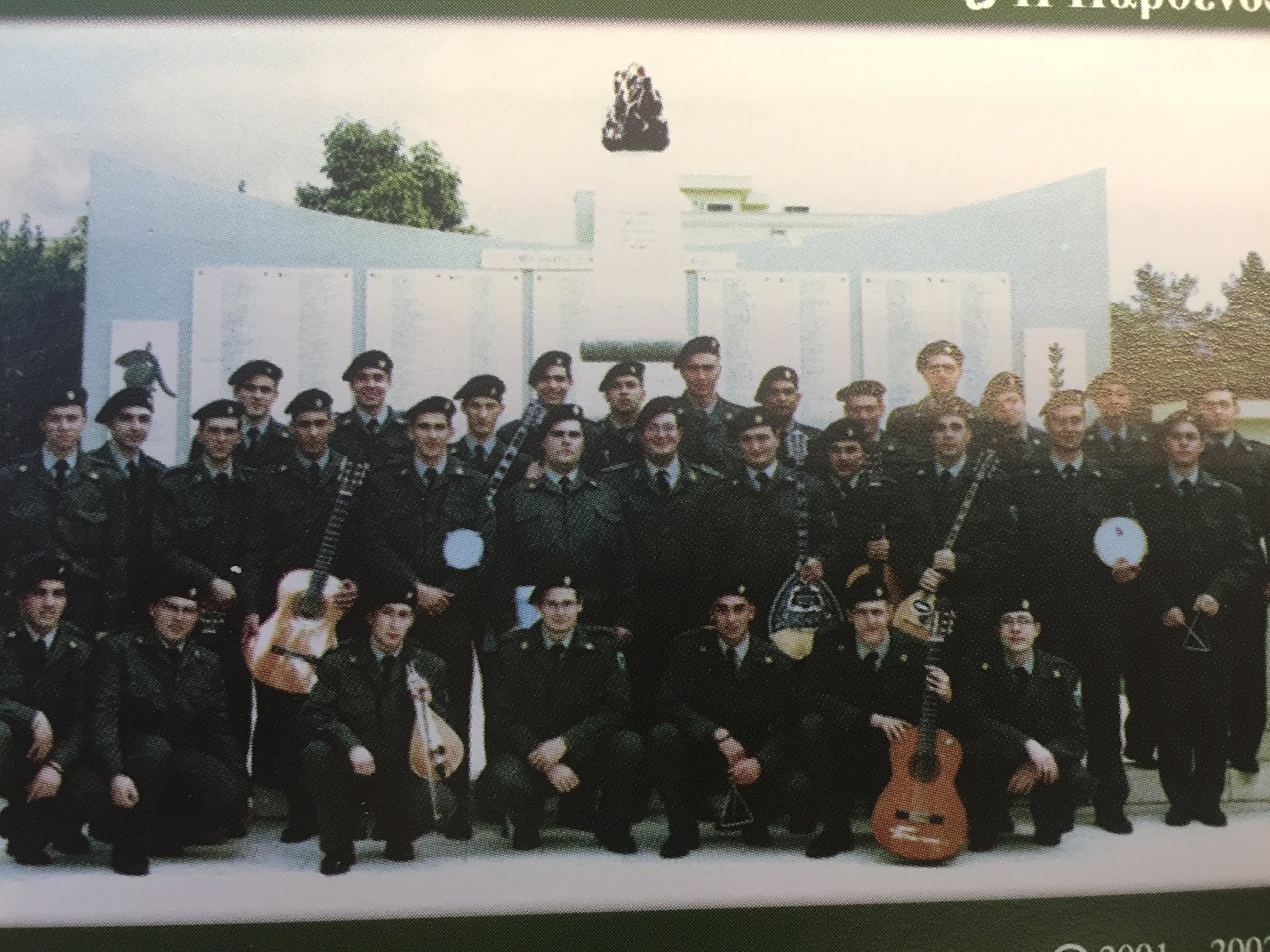 Με αυτά τα παιδιά (επαγγελματίες μουσικοί που υπηρετούσαν την θητεία τους) συστήσαμε αυτή την ορχήστρα και Χορωδία και με πολύ κέφι, πάθος και μεράκι πραγματικά περάσαμε αξέχαστα Χριστούγεννα το 2001. Μάλιστα η Ορχήστρα μας βγήκε πρώτη μεταξύ άλλων μουσικών συνόλων στρατοπέδων και τιμήθηκαν όλα τα παιδιά όταν παρουσιάσαμε το Πρόγραμμά μας στην Αίθουσα Εκδηλώσεων του Υπ. Άμυνας στο Πεντάγωνο..Οι τιμητικές άδειες έπεσαν βροχή... Αξέχαστες και συνάμα γλυκές στιγμές της ζωής μας....18 Χρόνια μετά!!